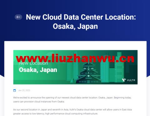 我们很高兴地宣布我们最新的云数据中心地点启用:日本大阪。从今天开始,用户可以从大阪供应云实例。作为我们在日本的第二个位置和在亚洲的第七个位置,Vultr 的大阪云数据中心将使东亚用户能够更好地访问低延迟、高性能的云计算基础设施。
