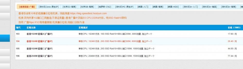 | 香港1024M 套餐A [广播IP] | 香港1024M 套餐B [广播IP] | 香港1024M 套餐C [广播IP] |