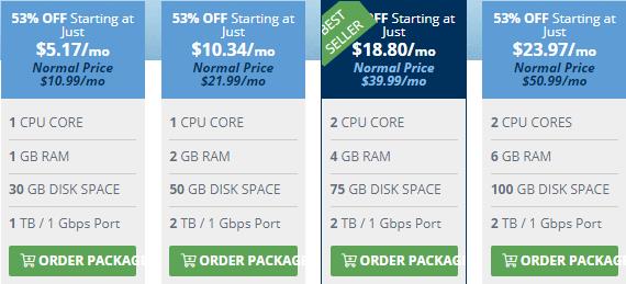 Hostwinds美国VPS主机产品在国内还是很少欢迎的,主要是由于采用固态硬盘、性能比较好,而且租用价格也不贵,多种方案可供选择。目前Hostwinds全托管(拥有完全权限)的美国VPS主机共有四种方案,最低价格5.17美元/月(Linux操作系统),详细的方案配置如下: