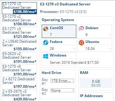 Hostwinds美国独立服务器配置也非常的高,而且提供的方案种类也比较多,包括主流的CentOS、Debian、Fedora、Ubuntu以及Windows等操作系统,现在最低价格是106美元/月。