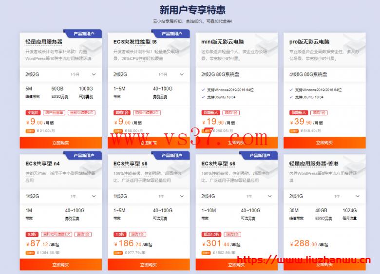| ECS | 2核 | 2GB | 60GB | 不限 | 1M | 9元/月 | 购买链接 |