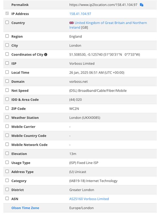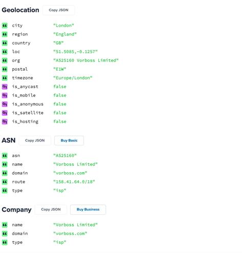 经 MaxMind、IPinfo 和 IP2Location 数据库验证,该服务器分配的 IP 地址归属于 Vorboss Limited,其地理位置精确至英国伦敦。这些线路支持真实的企业级网络特性,同时提供优质的固定线路 ISP 连接服务。