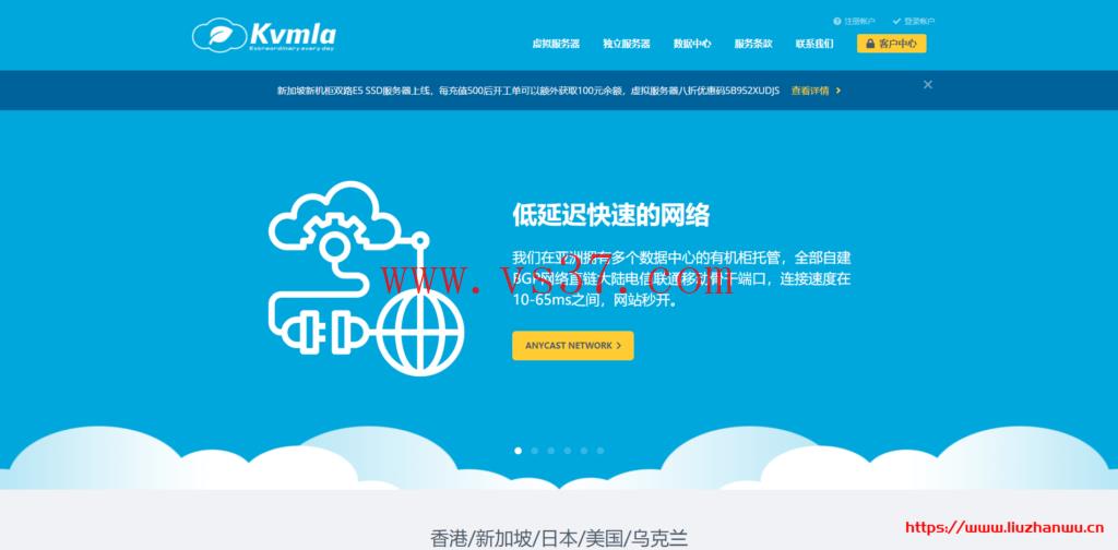 Kvmla怎么样,Kvmla好不好,Kvmla已经有一段时间没有发布促销信息了,商家最近发布了十周年活动,全场VPS主机年付5折,月付也可使用8折优惠码,新加坡、日本东京等机房独立服务器85折租用等, 老用户还可以参与充值500元赠送100元活动。这是一家成立于2011年的国人主机商,主要提供独立服务器租用和基于KVM架构的VPS主机,数据中心包括中国香港、日本、新加坡和美国洛杉矶等,均为自己的机柜自有硬件和IP资源。有需要的,可以关注一下。