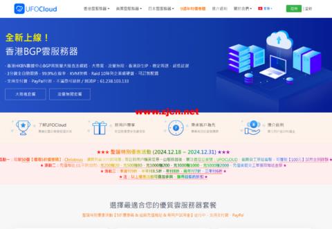 UFOVPS发布了圣诞节期间的促销活动,从12月18日-12月31日期间,针对VPS主机限量提供永久5折优惠码,可选香港CN2 GIA/BGP、日本CN2 GIA、美国BGP(高防VPS)等机房线路,折后最低月付19元起,同时可参与充值赠送活动,充200元赠送20元,最高充5000元获赠2000元,另外新注册用户关注官方微信公众号截图给客服后可获取100元试用金。