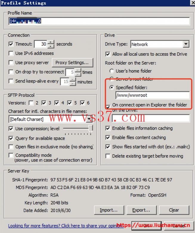 设置访问目录, 由于我是直接用root用户访问的。 所以我要设置一下访问目录。 如果没设置的话连接上后挂载的路基是 liunx 服务器的根目录 /