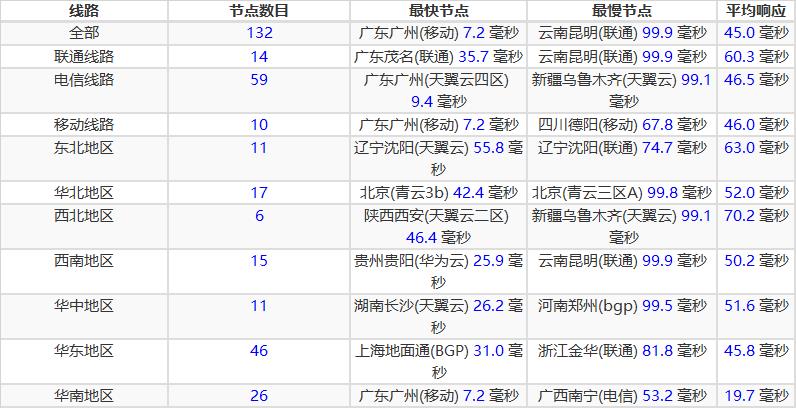10 111.24.12.58 26.49 ms AS9808 China Guizhou Guiyang ChinaMobile