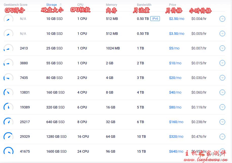 二、Vultr云服务器价格表