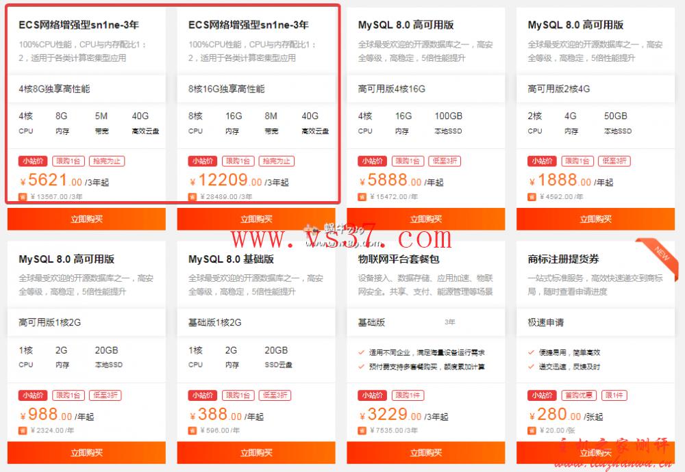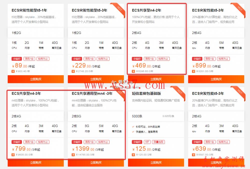 当然并不是说突发性能型云服务器不能用,如果预算资金不是特别充足,购入进来用于建个小博客也是没点压力的,毕竟网站一般也是突发使用CPU高一点,无需长期占有CPU性能!所有突发性能的2核4G5M899元/3年、2核4G3M639元/3年方案也是可以选择的。不过和100%CPU性能方案相差不是特别大,三年也就是100元左右的差距,这个看自己的选择了。