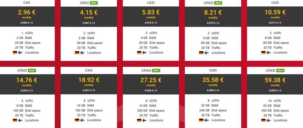 Hetzner,老牌德国主机商,这家的独服均为1Gbsp带宽、不限流量,此外,KVM VPS性价比也高。现在新推出了AMD EPYC处理器的VPS,性能更好,但价格较高。