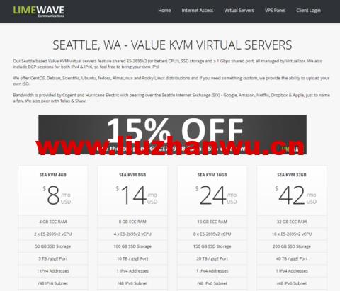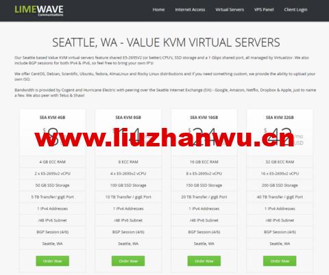 Limewave:美国西雅图机房vps,1GB内存/10GB SSD硬盘/1TB流量/1Gbps带宽,$2.8/月,发工单免费升级双倍内存/月流量 Limewave怎么样,Limewave是2010年注册于加拿大的一家互联网服务商,商家提供宽带接入、VPS、虚拟主机等产品,其中VPS主机开设在美国西雅图机房,自有硬件和AS网络(AS36369),基于KVM架构,采用SSD硬盘,提供IPv4+IPv6。目前商家正在开展VPS主机7折优惠促销,同时...