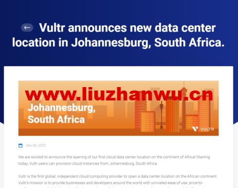 Vultr:新上非洲机房,南非约翰内斯堡数据中心,新用户优惠码,赠送最高$100美金,全球26个数据中心可选,月付2.5美元起,支持按小时计费 我们很高兴地宣布我们在非洲大陆开设第一个云数据中心! 从今天开始,Vultr 用户可以从南非约翰内斯堡供应云实例。 Vultr 是第一家在非洲大陆开设数据中心的全球独立云计算提供商。 Vultr 的使命是为世界各地的企业和开发人员提供无与伦比的易用性、性价比和全球影响力。 这一使命的一个基本部分是不...