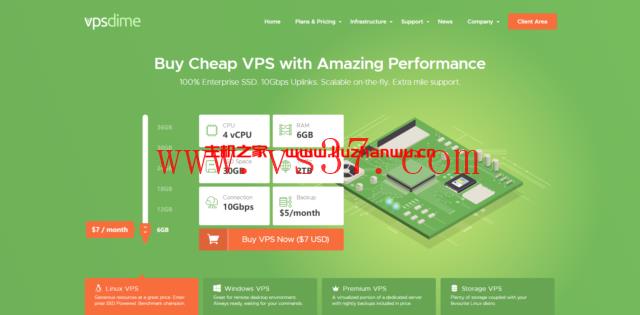 VPSDime:国外VPS,4核/6G内存/30 GB SSD/2TB流量/10Gbps带宽,$7/月起,可选美国/英国等多机房 VPSDime怎么样,VPSDime,成立于2013年的老牌商家,在西雅图和英国有办公地点,由Nodisto LTD 旗下运营,主营VPS,达拉斯和西雅图的上行链路为 10Gbps,其他位置为1Gbps。主要特色就是配置都比较高,性价比突出,每个VPS可以增加最多15个IP,数据中心有美国达拉斯、西...