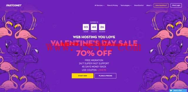 FastComet:情人节促销,虚拟主机高达70%优惠,VPS和专用服务器20%优惠 FastComet怎么样,FastComet好不好,FastComet是一家非常优秀的IDC托管公司,FastComet的服务器性能非常好,稳定性很强,国内访问速度非常的快,所有服务均可以使用免费CDN服务,45天保证退款,非常适合认真做网站的用户使用,FastComet提供虚拟主机、VPS主机、独...