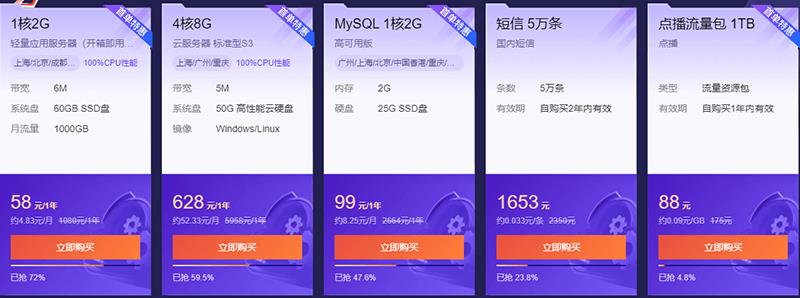 腾讯云:新人新春采购节哪几款比较有性价比可选 腾讯云怎么样,腾讯云好不好,腾讯云新人在新春采购节中有哪些值得选择的。 腾讯云 新春采购 活动 我们都知道,腾讯云特别喜欢采用的促销活动就是直接了当的秒杀活动。这次活动中每天依旧有五场活动,我们可以根据时间段看到有秒杀活动的产品。但是基本上所有的产品都是联动轮流的,如果你错过的话,就再看隔天的。 第...