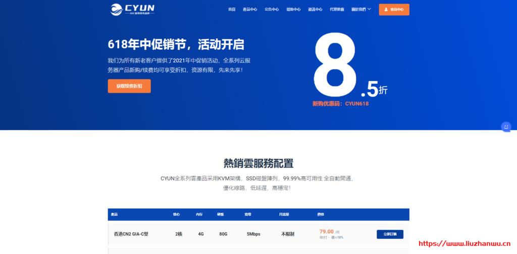 CYUN蓝米数据618年中促销节:新购/续费同享85折优惠,香港CN2 GIA/美国200G高防/美国CERA服务器24.65元/月起 CYUN蓝米数据怎么样,CYUN蓝米数据好不好,CYUN蓝米数据商家618年中促销节,活动开启:为所有新老客户提供了2021年中促销活动,全系列云服务器产品新购/续费均可享受折扣,资源有限,先来先享!本次针对618年中活动,CYUN提供了85折促销折扣,可选中国香港CN2 GIA套餐、美国200G高...